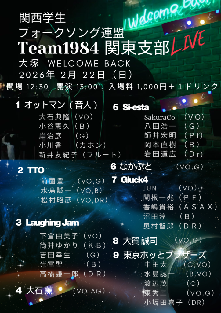 関西学生フォークソング連盟 Team1984 関東支部 Live